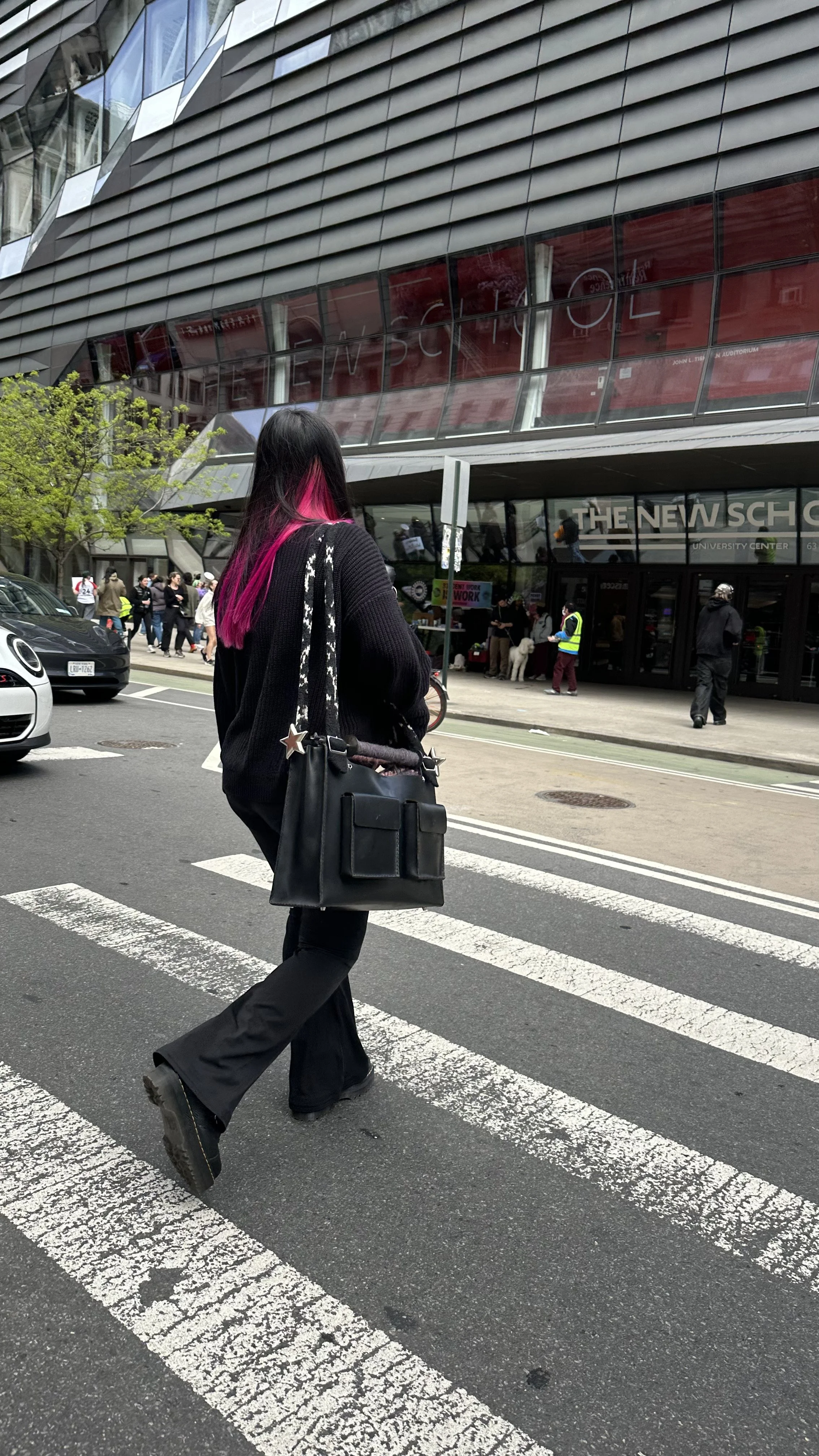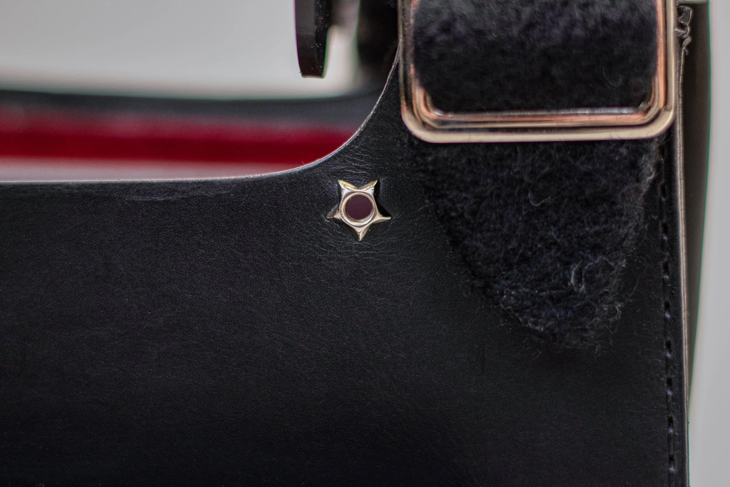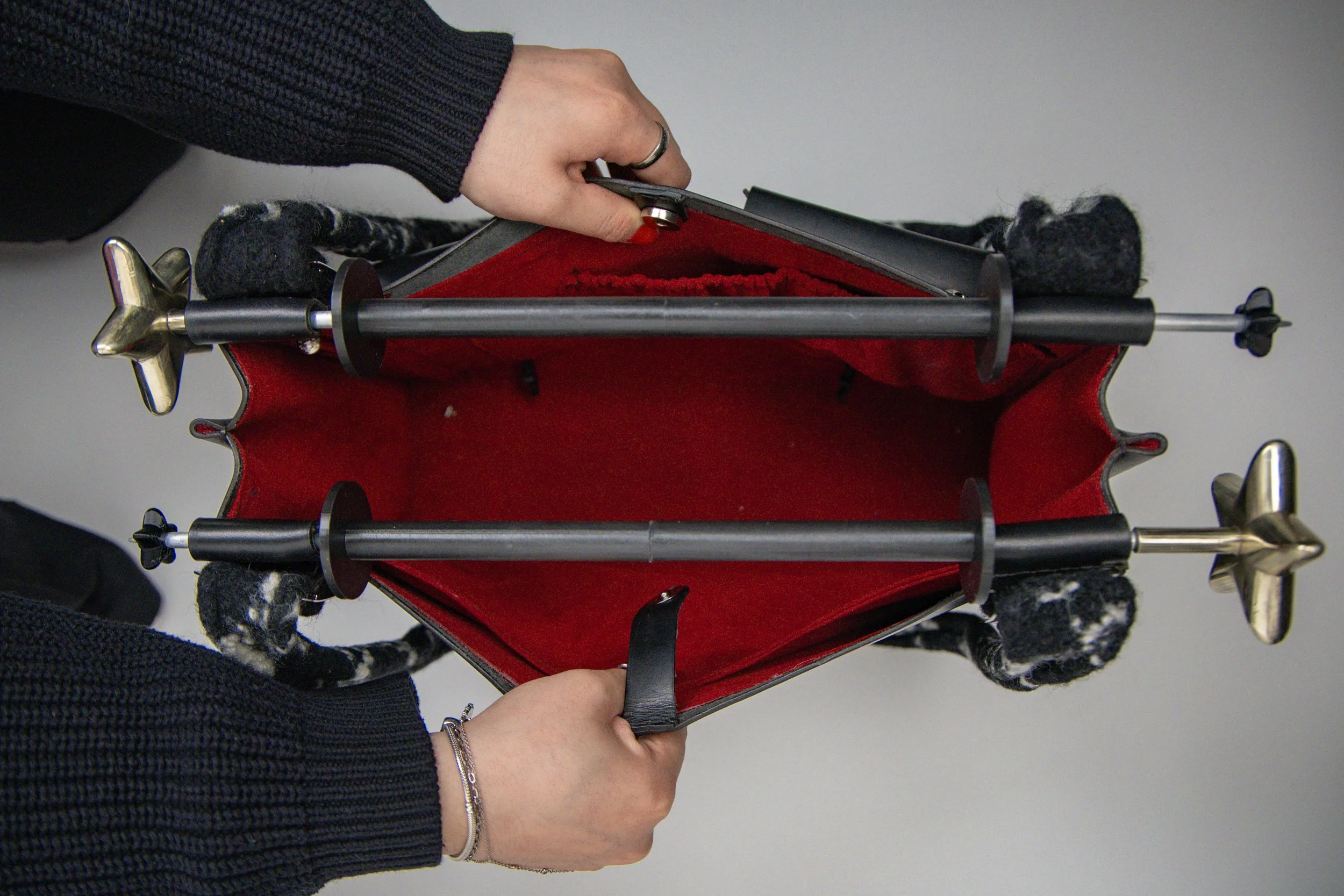 For my capstone project, I was given the freedom to define my own direction—and I chose to channel my passion for fiber arts into reimagining a bag tailored for the modern-day knitter. The result is a bold, functional, and fashion-forward accessory that challenges outdated stereotypes of who a fiber artist can be. This bag features a hand-knit and wet-felted strap for comfort, a zipperless and Velcro-free closure system for seamless access, and integrated tools such as custom-designed knitting needles and bobbins for winding yarn directly on the bag. Built from 100% genuine leather, every piece was meticulously cut, hand-stitched, and crafted from the ground up. Custom white brass star handles not only tie into the “nova” theme but also serve a functional purpose—facilitating the yarn-winding mechanism. Designed for students, travelers, professionals, and creatives alike, this bag reflects the versatility and modernity of today’s fiber artists. It’s not just an accessory—it’s a statement of empowerment, utility, and style.